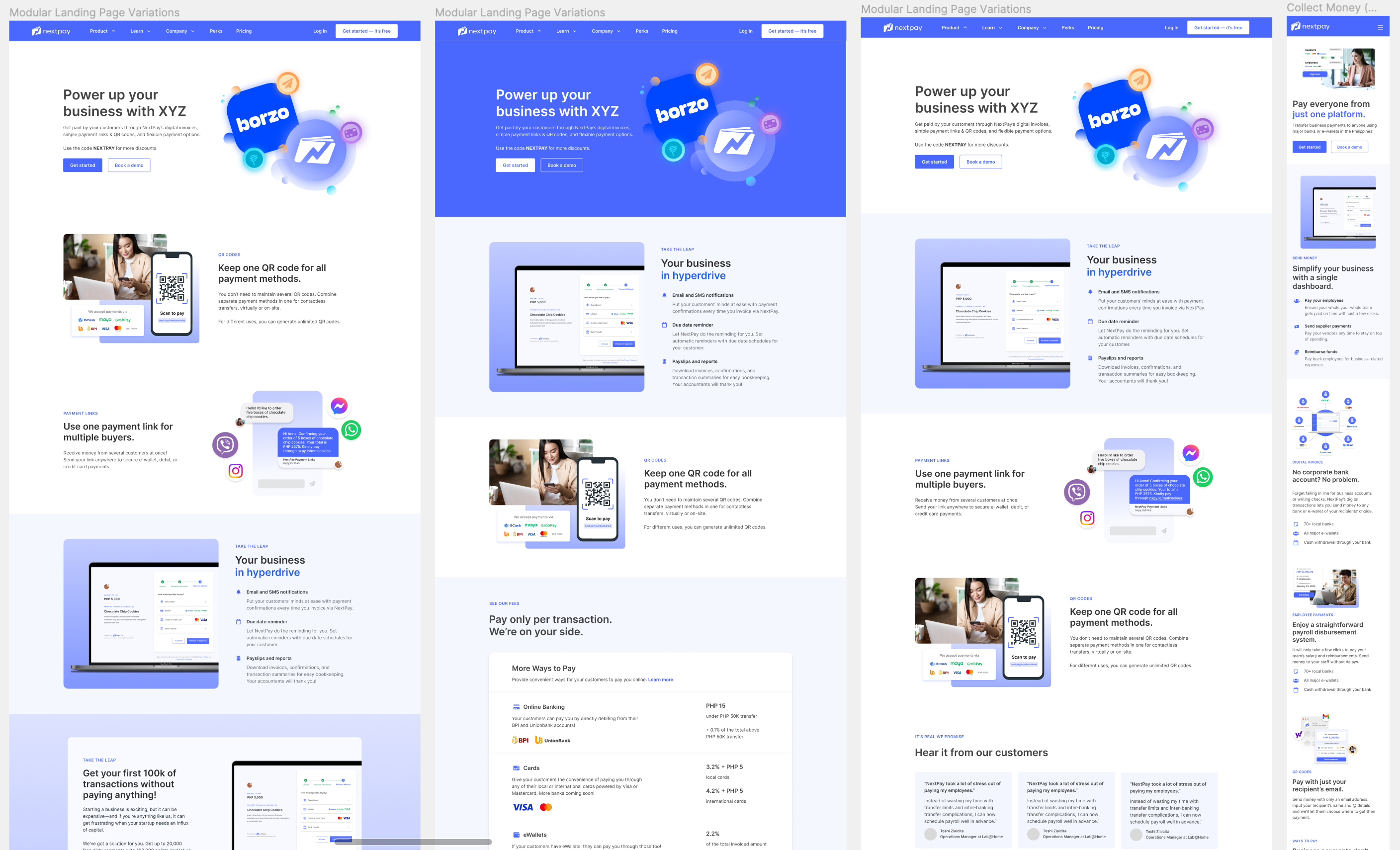 We worked in two sprints: first for the product pages, and second for the book a demo, modular landing page, and press page. Each time, after two weeks of design, I would start developing on Webflow.